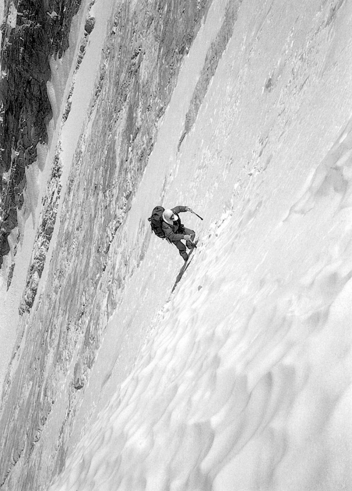 Mesners: Jā, taču šī līnija lielākoties rodas pirms tam. Kad es gatavoju pirmgājienu, es uzmanīgi pētu sienu vai fotogrāfiju no zināmas distances, un tad lēnām sāk veidoties šī līnija, es to zīmēju sev priekšā, un es esmu kā gleznotājs, kas kāpj pa to, tā rodas un paliek man galvā. Es to saucu pat — ja paliek pie mākslas — tā ir “nekā radīšana”. Pār kalna sienu ir uzvilkta līnija, taču tās tur nav. Bet tomēr tā tur ir. Tas ir ļoti interesanti. Ja mākslu iedomājas kā kaut ko, kas pieaug kvantitatīvi, var nonākt pie punkta, kur mums būs tā jāiznīcina: agrāk vai vēlāk mums Kirhneri un Pikaso būs jāiznīcina, jo šai pasaulē vairs nav vietas. Bet es neatstāju neko. Un tomēr tas tur ir. Doma, kas varētu piederēt biennālei Venēcijā. Tikai to nevar izstādīt.